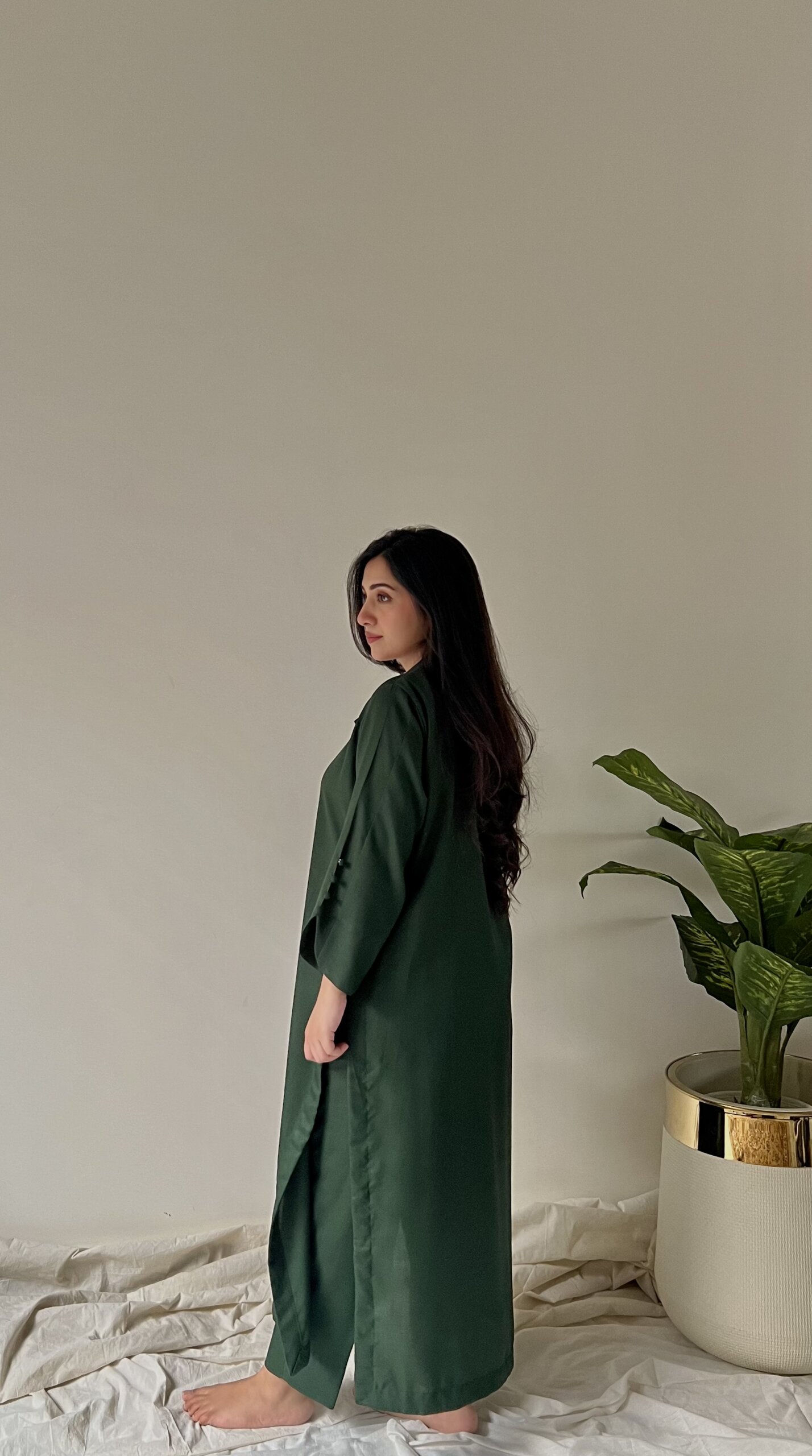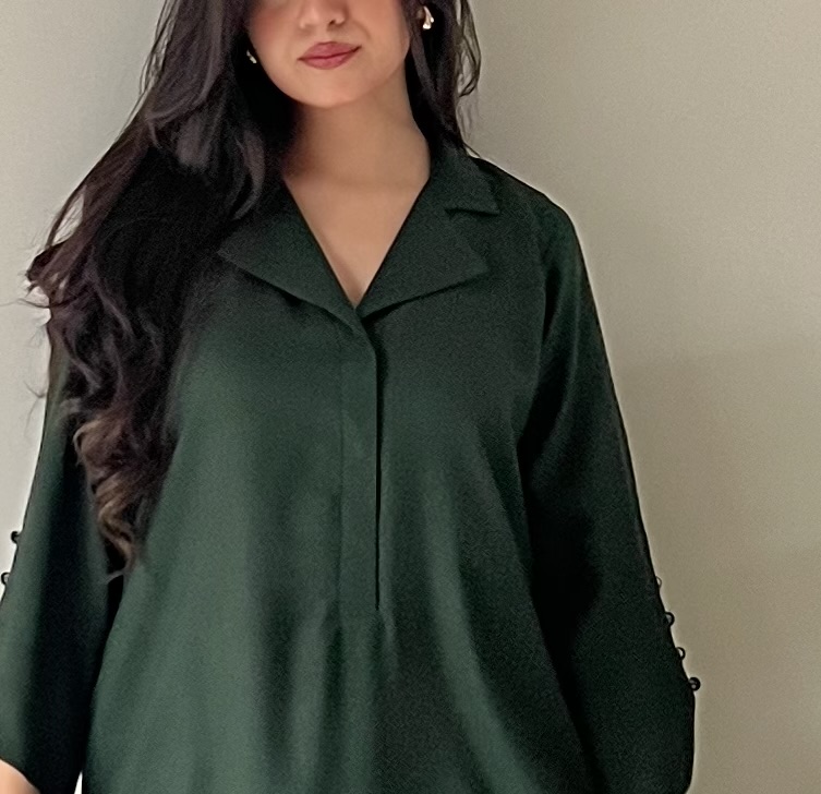 Experience the luxurious feel of dhanak with our Clover Co-ord set. This stylish set includes a beautiful and feminine collar neck, matching buttons on the arms with a flattering, rich color. The breathable dhanak fabric in a gorgeous green ensures all-day comfort. Paired with coordinating straight-leg trousers, this versatile outfit can be dressed up or down for various occasions.